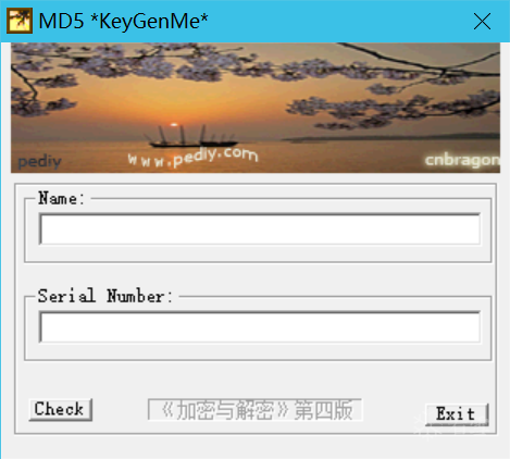 这里用《加密与解密(第4版)》随书文件 MD5KeyGenMe.exe 来分析。