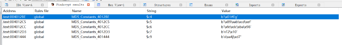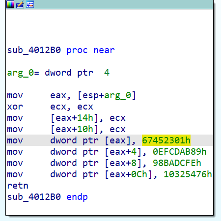 sub_4012B0 函数我们点进去看看发现了MD5的几个特征常量: